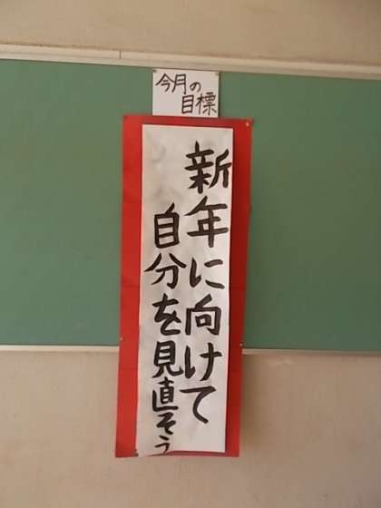 昇降口に掲げられる、生徒会役員によるスローガンが変わっています。