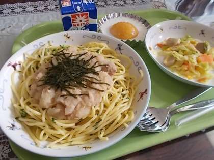 今年は、廃棄されてしまう大根の葉っぱも、スパゲティに混ぜて彩り豊かなスパゲティに仕上げてみました。