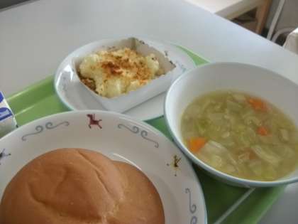 今日は「麦ごはん・ひじき入り卵焼き・さつまいものきんぴら・白菜と豆腐の味噌汁」でした。白菜は、冬の代表的な野菜です。白菜は、霜が降るころになると甘みが増して美味しくなります。その理由は寒さが厳しくなると凍らないように糖度をあげて、身を守るからだそうです。