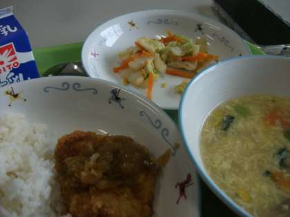 今日は「麦ごはん・油淋鶏・辣白菜・栗米湯」でした。