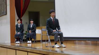 3年生は面接対策講座を行いました。高校の先生から、実際の面接の方法について話をうかがいました。座り方、礼の仕方の所作、実際の面接で聞かれることなど、ポイントをお話いただきました。生徒たちは、みなしっかりと取り組んでいました。