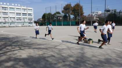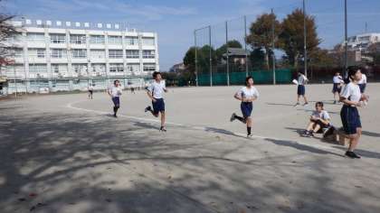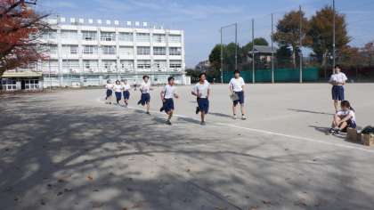 3年生の保健体育は、持久走に取り組んでいます。お互いを励ましながら、一生懸命走っています。全員最後まで走りきりました。