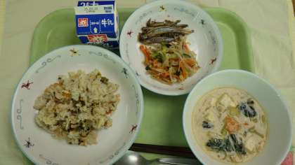 きなこ揚げパン シーフードチャウダー じゃこの和風サタダ 牛乳 【鉄分たっぷり献立】 不足しがちな栄養素のひとつである「鉄分」ですが、実際に不足すると体が重く感じたり、顔色が悪くなったり、疲れやすくなったり、日常生活に支障をきたしてしまうことがあります。 給食の大人気メニューである「きなこ揚げパン」の「きなこ」には、鉄分が豊富に含まれます。この時、ビタミンCを含む食品と一緒にとることにより効率的に鉄分を摂取できます。食べ合わせも大事なのです。 給食をおいしく残さずに食べることは、栄養の吸収をより良くすることにも通じているのです。 ![]() ![]() |