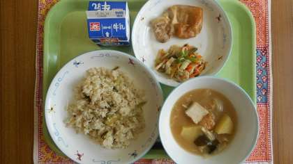 高菜チャーハン きびなごの唐揚げ 中華サラダ 中華風卵スープ 牛乳 【かみかみメニュー】 「きびなご」は、ニシン科で全長10センチほどの細長い円筒形の魚です。鹿児島県南部の方言で帯のことを「きび」小魚のことを「なご」と呼ぶことから、この名前がついたそうです。 今日の給食では、「きびなご」を骨ごとよくかんで食べることができたでしょうか。 他にも、きくらげや春雨、たけのこなど、食感の異なる食材が入っていました。 ひとつひとつの食感や味をかみしめて、おいしくいただきました。 ![]() ![]() 9月16日の給食
