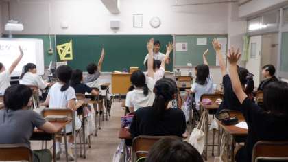 9月12日(金)、小中一貫教育の取組として、南が丘小学校と南田中小学校の6年生が中学校の生活を体験しました。初めに、授業体験をしました。小学校の学級ごとに分かれて、英語、美術、数学、体育の授業を受けました。中学校の先生方も、小学生に分かりやすいように授業のプランを考えました。小学生の多くは「楽しかった」と言ってくれました。