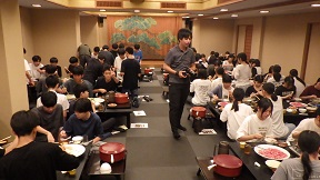 私にとって宿舎で撮るクラス写真は、初めてでした。これもなかなか面白いものですね。 撮影風景をお伝えします。 ![]() ![]() ![]() ![]() ![]() ![]() 9月24日 3年修学旅行 1日目 8 夕食