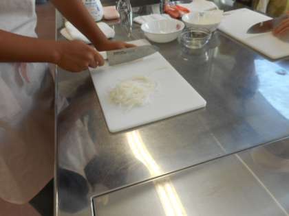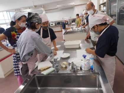 2学期は調理に取り組んでいます。今日は、大根を使って細切りとみじん切りをしました。先生の話をよく聞き、後片付けも気を配りながら行っていました。