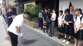祇園の街の北です。大通りから離れているので、とても静かです。一本脇に入ると、風情ある京の町並みが残っていました。 ![]() ![]() ![]() ![]() 9月25日 3年修学旅行 2日目 2 班での京都めぐり