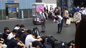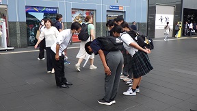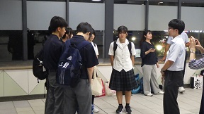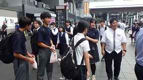 利用者の妨げにならないよう、短時間で要所を押さえての会です。 校長の挨拶、実行委員からの3日間の学び、最後に添乗員さんと看護師さんにお礼を伝えました。 京都・奈良、お世話になりました。 ![]() ![]() ![]() ![]() ![]() ![]() 9月26日 3年修学旅行 3日目 3 京都駅に集合