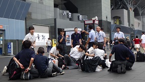 タクシー行動を終えて、班ごとに続々と京都駅に集まってきます。