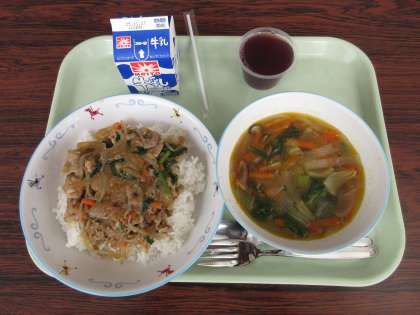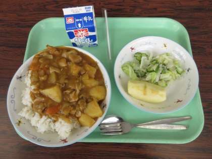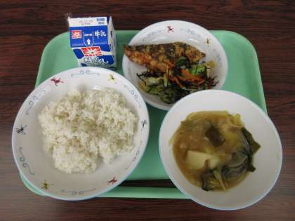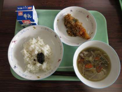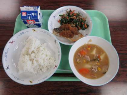 「北海道産きらら米」⇒「北海道産ななつぼし」に変更 「さばの塩焼きおろしぞえ」「ほうれん草のごま和え」 「どさんこ汁」「牛乳」 ※今日は「今月のお米」「北海道郷土料理」献立です。 ☆ 「給食だより」から ☆ 今日の給食で提供する予定でした「北海道産きらら米」はお米の入荷 の都合により「北海道産ななつぼし」に変更になりました。 「ななつぼし」は、ほどよい粘りとふっくらした食感が特徴で、どの ようなおかずにも良く合います。冷めても美味しいのでお弁当やおに ぎりにもぴったりのお米です。 「どさんこ汁」は、北海道で採れた野菜をたくさん使った味噌汁です。 最後にバターを加えて仕上げます。 北海道の大自然の中で育まれた食材をご堪能ください。 11月21日(金)