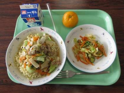【本日の献立】 「あんかけ焼きそば」「こんにゃく入り中華サラダ」 「果物(みかん)」「牛乳」 ☆学校は、今日で期末考査が終わりました。多くの生徒は少し緊張の糸 が緩み、ホッとした表情をしています。 谷原の森は木々の葉が少しずつ色づき、高くなった青い空に映えてい ます。秋の深まりとともに空気が乾燥してきました。かぜやインフル エンザなどの感染症もはやりやすい季節がやってきました。今年は早 くも東京都から季節性インフルエンザの「流行警報」が発表されまし た。栄養と休養、睡眠をしっかりとって元気に冬を乗り越えましょう。 11月6日(木)