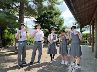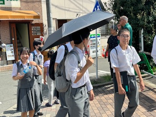 9月19日(金)![]() ![]() 「わかめご飯」「鶏肉とコーンの揚げ煮」「キャベツの味噌汁」 「牛乳」 ☆今日は、昨日・一昨日の猛暑から一転、朝の気温は19度台と今期の最 低気温で、半袖一枚では寒いくらいでした。これからは、暑さがぶり 返す日もありますが、一雨ごとに秋が深まっていきます。来週はもう お彼岸です。昔から「暑さ寒さも彼岸まで」と言います。今年はこの 言葉どおりになるでしょうか。 9月18日(木)![]() ![]() ![]() ![]() 【本日の献立】 「ピザトースト」「すりおろしドレサラダ」「秋野菜シチュー」 「牛乳」 ※本日は“給食試食会”でした。 ☆学校は、3年生が修学旅行の代休、2年生は職場体験で、登校している 生徒は1年生と1・2年のF組だけと静かな一日でした。 そんな中、保護者の皆様を対象に「給食試食会」を実施しました。校長 先生の挨拶のあと、栄養士さんから谷原中の給食について説明がありま した。話のあとは実際にみなさんで配膳して喫食です。谷原中の給食の お味はいかだでしたか。この機会をチャンスに、ご家庭でも「食」につ いて話題にしてください。 3年生 修学旅行<3日目>![]() ![]() ![]() ![]() 三日間天候にも恵まれ、順調に行程を進めることができました。初め て訪れる地で多くの人と出会い、学校ではできない貴重な経験をするこ とができました。 3年生 修学旅行<3日目>![]() ![]() ![]() ![]() を見学して宇治の平等院経向かいます。 9月17日(水)![]() ![]() 「パエリア」「コーンポテト」「オニオンスープ」「牛乳」 ☆ 「給食だより」から ☆ 今日は「減塩の日」だそうです。お菓子など、身近な加工食品には、 多くの塩分が含まれているものがあります。中学生の1日の塩分摂取 目標量は男子7.5g未満、女子6.5g未満です。例えば、カップ麺を全 部食べると約5gの塩分を摂取することになり、これだけで1日の塩 分摂取目標量の約8割をとってしまいます。子どものうちから、塩分 をとり過ぎていると、将来、心臓病などの生活習慣病を発症しやすく なります。そうならないためには、今のうちから塩分をとり過ぎない ように注意することが大切です。 3年生 修学旅行<2日目>![]() ![]() 2日目は京都市内の班別行動です。清水寺のチェックポイントを通過 して近鉄奈良駅まで向かいます。その後、送迎バスで奈良の宿舎へ向か います。 3年生 修学旅行<2日目>![]() ![]() 2日目も天気に恵まれています。「秋の古都」とまでは行きませんが、 陽射しの角度や虫の声に秋の気配を感じます。F組は八坂神社から行動 開始です。 9月16日(火)![]() ![]() 「豚キムチ丼」「中華五目スープ」「レモンスカッシュゼリー」 「牛乳」 ☆「敬老の日」に合わせて9月15日現在の65歳以上の高齢者の人口推計 が公表されました。総務省によりますと高齢者は3619万人と前年よ り5万人減ったものの、総人口に占める割合(高齢化率)は0.1ポイ ント増えて29.4%になったそうです。比較可能な1950年以降で過去 最高を更新したそうです。 3年生 修学旅行<1日目>![]() ![]() ![]() ![]() 夕食のあとは体験学習「舞妓鑑賞」です。日本の伝統芸能を間近で観 ることができました。日頃接することが少ない「和の文化」もなかなか 良いものです。 3年生 修学旅行<1日目>![]() ![]() ![]() ![]() 無事に班別タクシーを終えて宿舎に到着しました。お楽しみは宿舎の 豪華な夕食です。みんなお行儀良くいただきました。 旅の疲れも見せず、元気です。 3年生 修学旅行<1日目>![]() ![]() ![]() ![]() タクシーの運転手さんの案内で自分たちが考えたコースを巡ります。 ガイドブックに載っていない「こぼれ話」や「見どころ」を聞くことが できました。 3年生 修学旅行<1日目>![]() ![]() ![]() ![]() ![]() ![]() 金閣寺(鹿苑寺金閣)のチェックポイントです。みんな素敵な笑顔で 班行動が進んでいます。 3年生 修学旅行<1日目>![]() ![]() 3年生は9月15日(月)から2泊3日の予定で京都・奈良方面に「修学 旅行」に出かけています。 無事京都に到着し、これからタクシーに乗り込みす。今日は京都方面の 班別タクシー行動です。 9月12日(金)![]() ![]() ![]() ![]() 【本日の献立】 「衣笠うどん」「かしわいそべ天」「さつま芋天ぷら」「牛乳」 ※今日は“京都府郷土料理”献立です。 ☆ 「給食だより」から ☆ 3年生は、15日(月)から京都・奈良へ修学旅行に出かけます。これに ちなんで今日の給食は、京都の郷土料理です。みんなで「衣笠うどん」 を楽しみましょう。3年生の皆さんは楽しく元気に修学旅行に行って きてくださいね。 9月11日(木)![]() ![]() 「麦ご飯」「ひじきふりかけ」「和風卵焼き」「沢煮椀」「牛乳」 ☆今日9月11日は世界中を震撼させた大事件が起きた日です。あれから 24年の月日が流れました。24人の日本人を含む3,000人ちかくの方が 犠牲になりました。テレビで生中継された映像は、まるで映画のワン シーンのようで、とても現実とは思えませんでした。今もなお各地で 争いごとが起きています。過去の過ちに学び、このような悲劇をが繰 り返されない平和な世界にな