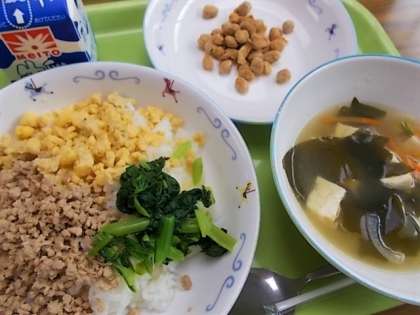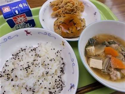 今日のひき肉みそは、鶏ひき肉、人参、ちりめんじゃこ、にらを炒めてみそや砂糖、みりんで味つけしました。ご飯にのせて食べるとごはんのすすむ献立です。 煮物には全部で9種類の具材が入っています。一番多いのが生揚げで、じゃがいも、大根と続きます。給食の煮物は大きい釜にたくさんの具材を入れて長い時間煮るので、味がしみ込んでおいしくなります。具材が多い分洗ったり切ったりなどの下処理はとても大変です。朝早くから作ってくれている調理員さんに感謝ですね。 バドミントン練馬区新人戦女子団体 優勝