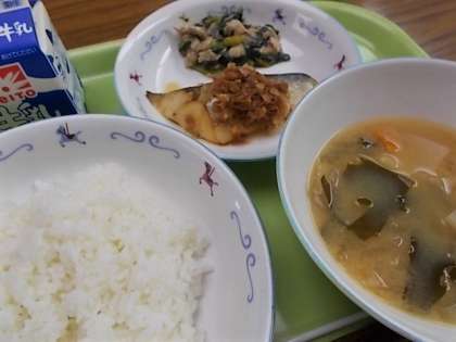 今日の魚はさんまです。さんまは秋が旬の魚で、秋に脂がのっておいしくなります。「かば焼き」は魚を開いて骨をとり、揚げてたれをつけた料理で、甘辛いたれがごはんにもよく合います。 さんまは漢字では秋刀魚と書き、「秋に獲れる刀のような形をした魚」という意味があります。さんまの脂には頭の働きをよくするDHAやコレステロールを減らす働きのあるIPAがたくさんふくまれています。 |