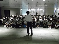 写真は、大広間での大会の様子です。