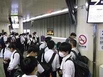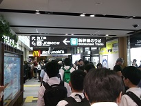 予定通り京都駅に到着しました。停車時間が短いので協力してスムーズに行動します。京都駅では新幹線ホームから構内を移動して、地下鉄に乗り換え四条駅を目指します。