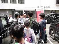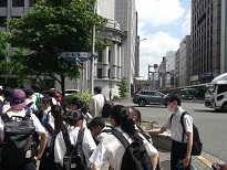 宿舎の門を出て班行動開始です。写真の班は東に向かっているので、京阪の三条または祇園四条を目指しているようです。