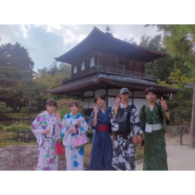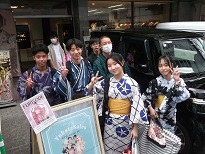 浴衣を選び着替えて見学地へ向けて出発です。浴衣での行動なのでタクシーを使います。多くの班が嵐山や金閣寺などの見学を予定しているようです。
