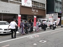 四条に到着しました。地上に出たところは四条通と烏丸通の大きな交差点でした。ここから歩いて衣装レンタルの「京あるき」へ向かいます。