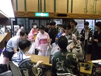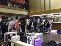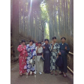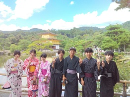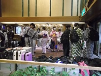 班行動が終わり宿舎に帰ってきました。帰着の報告をして班ごとに浴衣の記念撮影をしました。17時全班無事に宿舎に到着しました。