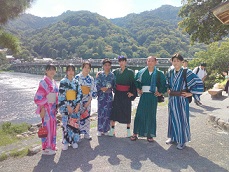 写真は、嵐山の渡月橋、竹林と八つ橋作り体験です。
