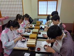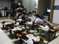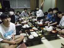 宿舎は三木半旅館にお世話になります。それぞれ部屋に入り夕食前に入浴タイムです。集団での入浴なので時間との勝負なのですが、これまでの宿泊行事の経験を生かして予定の時間より早く上がることができたとの報告がありました。