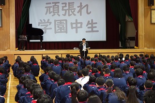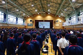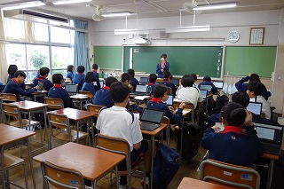 校長先生のパワーポイントを使ったプレゼン形式の朝礼に生徒の皆さんは視覚的に集中して内容をしっかりと聞いていました。 その後、表彰が行われ、吹奏楽部、女子バスケットボール部、陸上競技部が賞状を校長先生から受け取りました。 文武両道で、多方面に活躍している学園中の生徒です。 今後も成果が出るよう、がんばってくださいね! (副校長 藤本) 11月8日(土) 土曜授業 学校公開