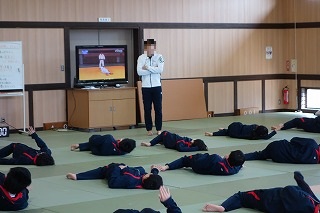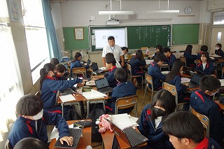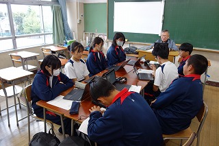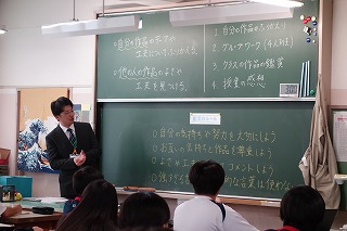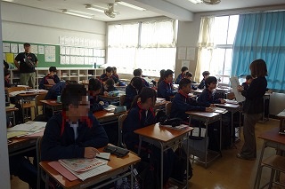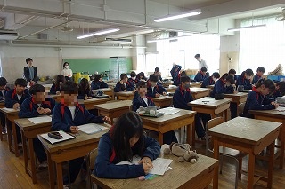 午前中の3時間授業で、朝の会から帰りの会までの時間、公開としました。 多くの方にお越しいただき、ありがとうございました。 また、今回はPTA会長に受付を手伝っていただきました。 日頃から学校運営に協力していただいています。 ありがとうございます。 保護者の皆様、今後ともどうぞよろしくお願いいたします。 (副校長 藤本) 11月7日(金) 2年次研究授業(1年生保健体育)