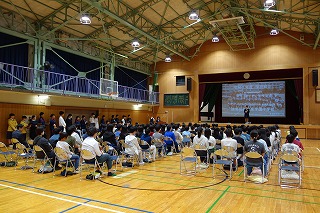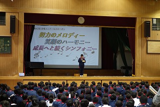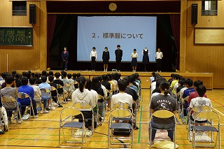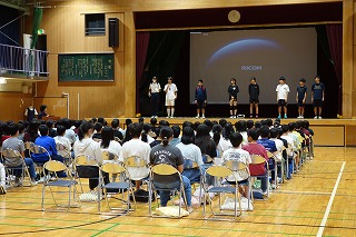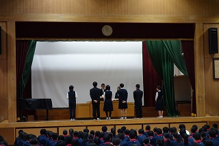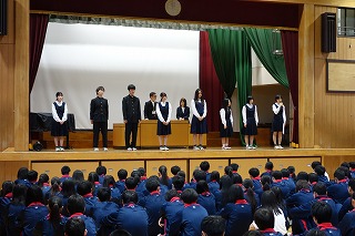 実行委員会からの話や声出し、その他確認が行われました。 今日まで各クラスのパートリーダー、伴奏者、指揮者を中心にスローガン「努力のメロディー 笑顔のハーモニー 成長への続くシンフォニー」が実現されるよう、がんばってきたと思います。 明日は最高の歌声を響かせてくださいね! (副校長 藤本) 10月20日(月) 生徒会朝礼、任命式