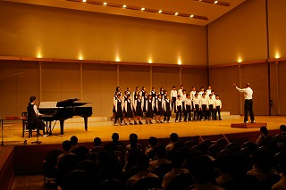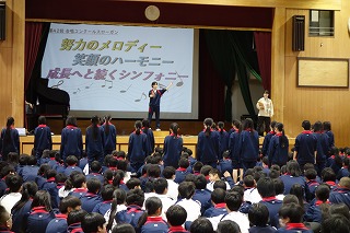 1年生の数学です。 反比例のグラフに関する内容でした。 反比例は滑らかな2つの曲線がグラフの形状になるため、それを視覚的にわかるよう、ICT機器を活用した授業でした。 2年次の先生、今後も研鑽を深め、がんばってくださいね! (副校長 藤本) 10月22日(水) 第42回合唱コンクール