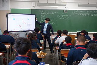生徒会役員からの中学校の紹介、標準服の紹介、そして各部活動の部長からは部活動の紹介が行われました。 訪問した6年生の皆さんは4月からの中学校生活をイメージすることができたでしょうか。 少しでも不安が解消されていることを願っています。 担当した生徒会役員会、部長会の皆さん、お疲れさまでした。 引率していただいた小学校の先生方、ありがとうございました。 (副校長 藤本) 10月28日(火) 2年次研究授業(1年生数学)