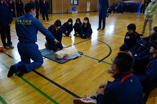 避難拠点運営連絡会の方と石神井消防署大泉学園出張所の方、そして区民防災課の方と一緒に、1年生が防災に関わる体験を行う行事です。 避難拠点運営連絡会からはD級ポンプの取扱い訓練、区民防災課の方からは避難所の仮設トイレの説明、消防署の方からはAED訓練と包帯法訓練を行っていただきました。 中学生は、災害時には「共助」の行動が出来ることを期待されています。 今日の訓練から、初期消火や怪我人の対応など、いざという時に力を発揮してくれることを期待しています。 避難拠点運営連絡会の皆様、石神井消防署大泉学園出張所の皆様、区民防災課の皆様、ご協力ありがとうございました。 (副校長 藤本) 10月28日(火) 小中一貫教育 中学校訪問