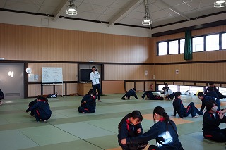 1年生の保健体育です。 柔道に関する内容でした。 受身の取り方を動画で確認し、各自丁寧に動作を確認しました。 2年次の先生、今後も研鑽を深め、がんばってくださいね! (副校長 藤本) 11月5日(水) 地域防災訓練