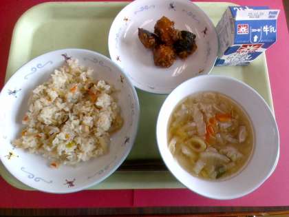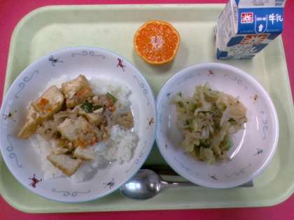 ・じゃこサラダ ・みかん ・牛乳 日本では昔からみかんが食べられており、冬の果物の定番です。風邪予防に有効なビタミンCを多く含みます。実が入っている袋や白い筋の部分にはお腹の調子をよくする食物繊維が豊富です。また、みかんの皮は、乾燥させて、漢方薬などにも使われます。おいしく栄養もあるみかんは、昔から日本で愛されてきたくだものです。 12月2日(火)給食の紹介